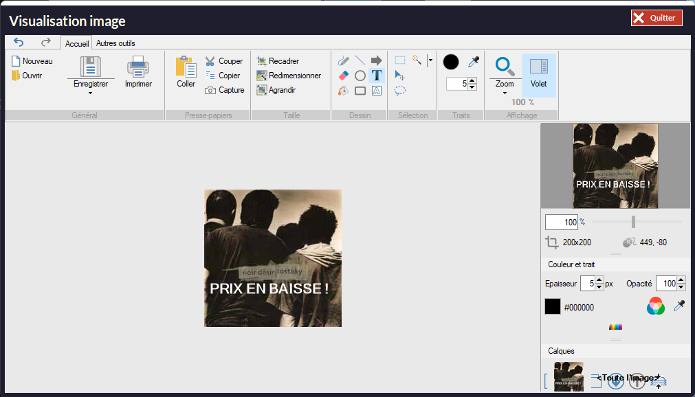 •L'application dispose d'un éditeur d'images simplifié. Il vous permettra de faire, entre autre, des annotations sur les images.