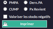 •Vous pouvez choisir de valoriser votre inventaire en PMPA, Dernier Prix d'Achat, CUMP, Prix de Revient en incluant éventuellement la valeur des stocks négatifs :
