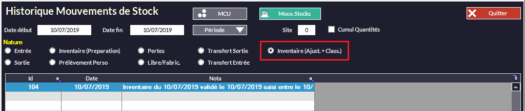 •Cliquez sur votre inventaire, le tableau du bas se remplit (plus ou moins vite selon le nombre d'articles) avec les articles inventoriés.