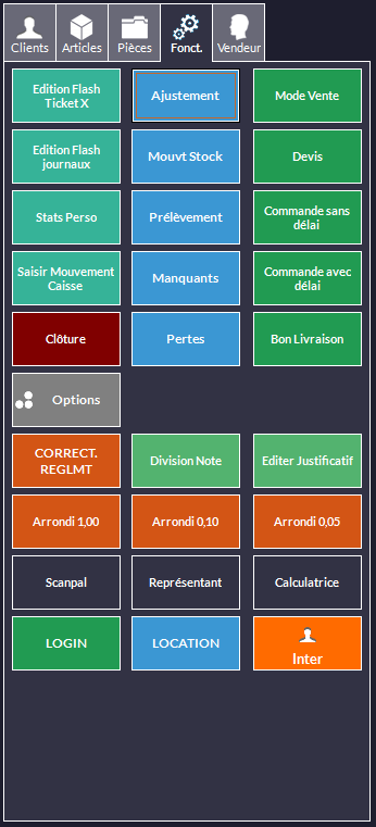 Ce sont les fonctions de bases pour la vente : total, sous-total, annulation, retour, etc. Il est également possible d'ajouter certaines touches en les programmant via des MCU.