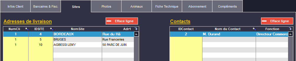 Comme tous les contacts peuvent être éparpillés sur plusieurs fiches, cette fenêtre les liste tous : nom du client (colonne Nom) et nom du contact (colonne NomContact).