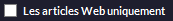 Si l'option Site Web (Fichier -> Paramètres -> Configuration F9 -> Article) est activée, vous aurez la possibilité d'afficher uniquement les articles web (case à cocher aussi dans les fiches articles pour les distinguer des autres). Ces articles sont reliés à votre site web (voir Options Métiers - Liaison Kezia II-Site Web).