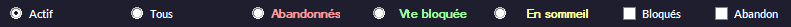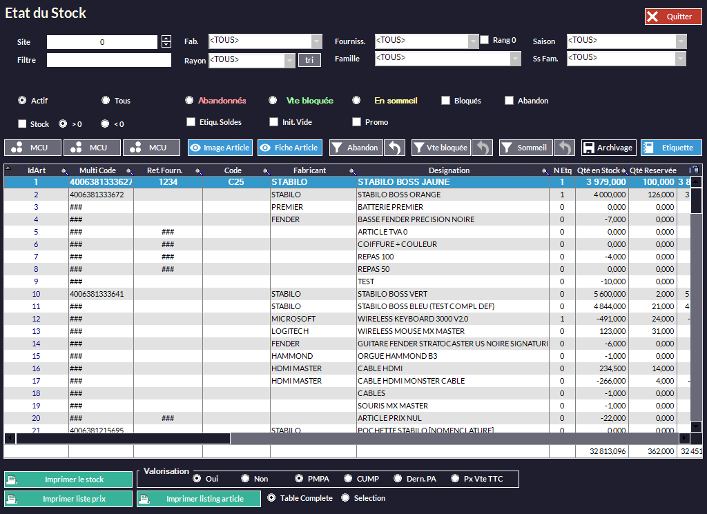 Filtre les articles par Actifs et/ou les Abandonnés et/ou Bloqués... (cf. Gestion des Articles).
