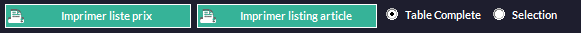 Imprime au choix : une liste de prix ou un listing complet de tous les articles ou seulement ceux sélectionnés.
