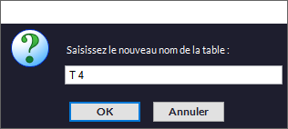 ☝Vous pouvez nommer une table au lieu du numéro attribué par défaut. Faites un clic droit sur la table en question et entrez le nom dans la fenêtre qui va s'ouvrir :