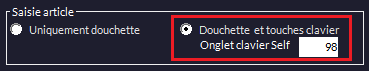 Dans la fenêtre, cliquez sur l’option Douchette et touches clavier et laissez le paramétrage de l’onglet Self à 98 :