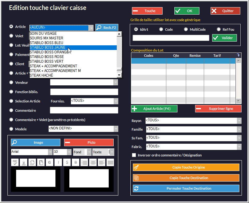 (Pour plus de précisions sur la création de touches, référez-vous au chapitre La Vente - Caisse - Claviers Personnalisés).