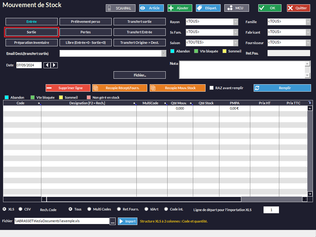 Permet de saisir un mouvement de stock en sortie.
