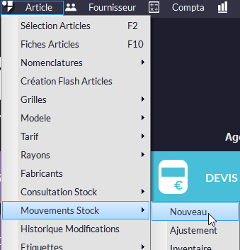 oVous pouvez appuyer sur F2 pour chercher le ou les articles que vous voulez entrer en stock. Renseignez la quantité que vous voulez sortir (et qui se soustraira au stock existant) dans la colonne Qté Mouv.