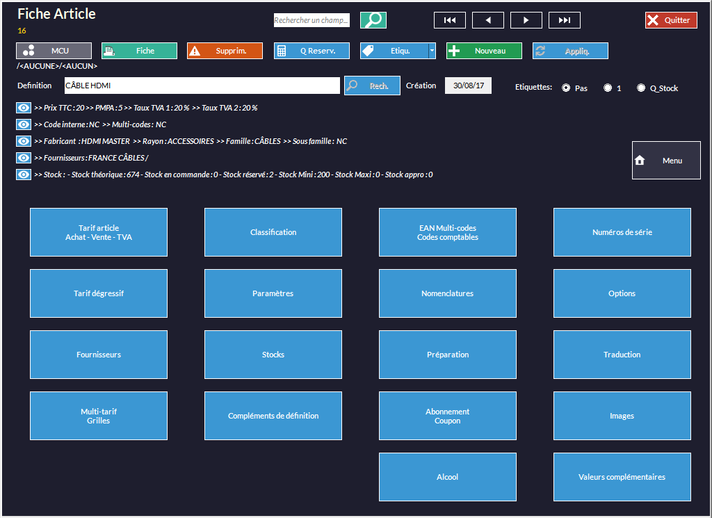 Parallèlement, vous devrez connaître les bases de la gestion des Rayons, Fournisseurs, Grilles de Tarifs et Stocks. Vous pourrez obtenir plus d'informations sur ces sujets en consultant les chapitres concernés plus loin dans ce manuel.