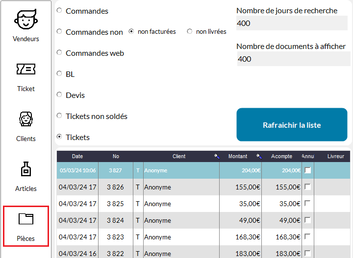 Cliquez sur le ticket que vous voulez régler :