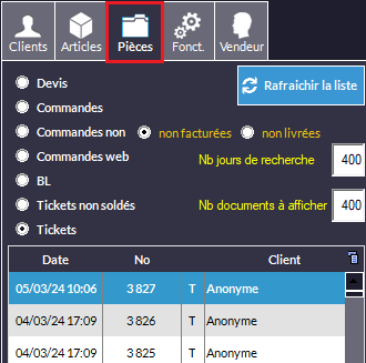 Il suffit de cliquer sur le bouton Pièces :