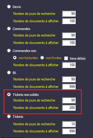 À droite cochez Tickets non Soldés :