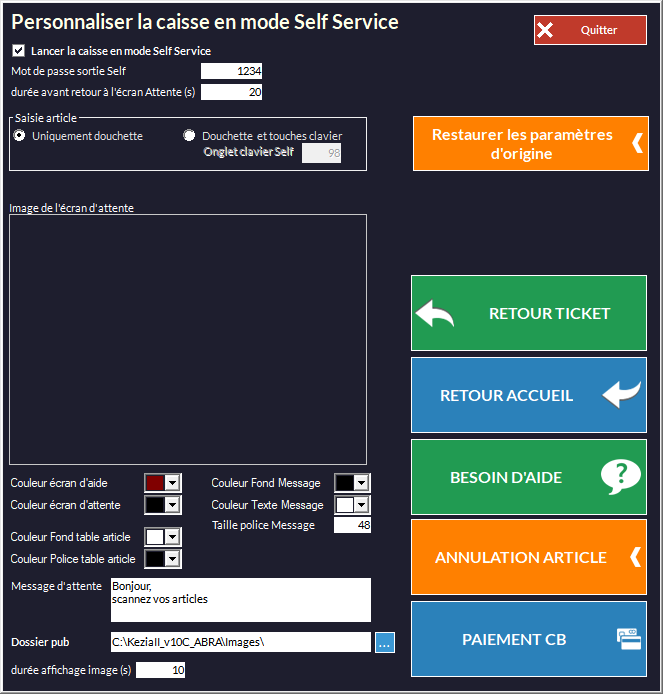 permet de passer le module Caisse en mode Self-Service. Le bouton