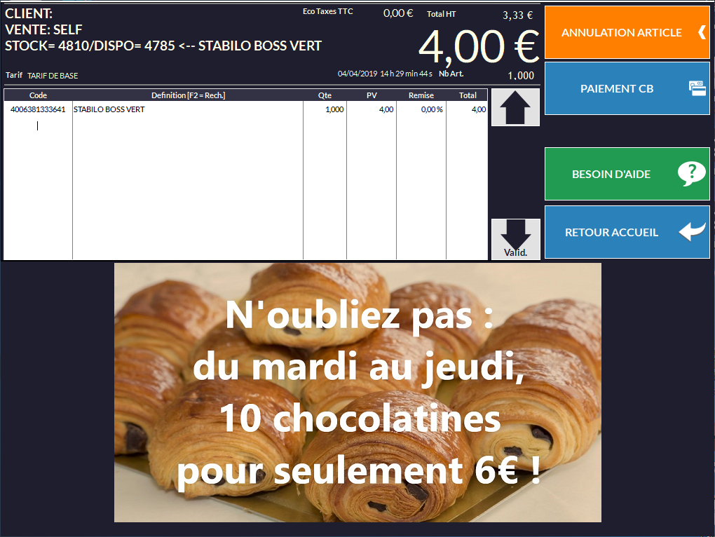 Vous pouvez également choisir des images (pub, communication…) qui défileront dans la zone basse de la caisse :