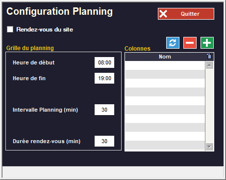 •Maintenant que votre planning a une ou plusieurs colonnes, vous pouvez choisir la segmentation des horaires avec le menu déroulant. Par exemple, si vos rendez-vous durent une demi-heure, mettez 30min dans le menu déroulant