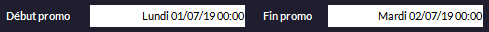 Entrez les dates de Début et de Fin de la promotion :