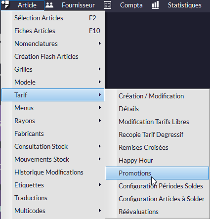 Le module de gestion des Promotions de Kezia II vous permet d'appliquer des prix promo (en pourcentage ou en montant) sur une sélection d'articles pour une période donnée.