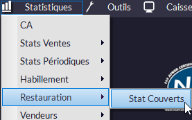 Dans une configuration Kezia Restauration, cette fenêtre affiche les statistiques du nombre de couverts et du chiffre d'affaires pour une période donnée.