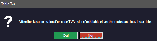 (Déconseillé ! Ne le faire que si l'on vient de créer le taux et que l'on s'est trompé, s'il y a eu des ventes avec ce taux c'est trop tard). Vous aurez ce message :