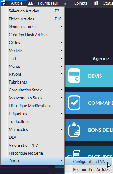 •Créer un Taux de TVA (préalablement connecté en Intervenant avec
