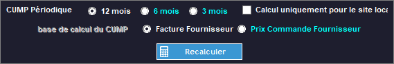 oL'option CUMP (Coût Unitaire Moyen Pondéré) calcule le prix d'achat sur la base d'une moyenne périodique. Allez dans le menu Fichier -> Paramètres -> Configuration F9 -> Article pour définir les paramètres souhaités. Vous pourrez ensuite utiliser le PMPA ou le CUMP pour valoriser votre inventaire.