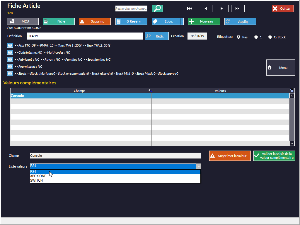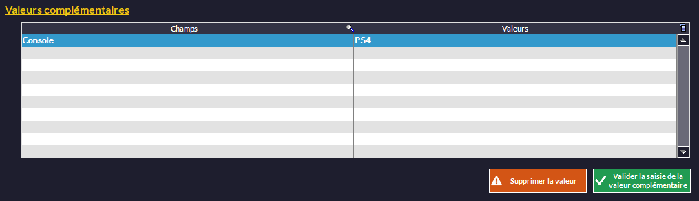 Une fois les champs activés et créés (voir chapitre Gestion des Clients - Valeurs Complémentaires) vous pourrez ajouter des valeurs personnalisées.