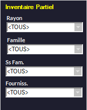 oSélectionnez un rayon, famille, fournisseur... dans l'encart Inventaire partiel :