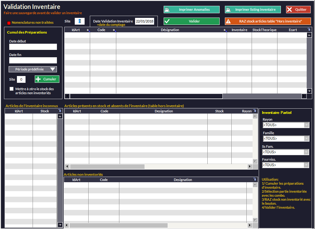 2. Validation d'un inventaire partiel.
